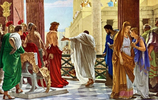 Poncius Pilátust, a római kormányzót is helytelenül mutatják be az evangéliumok. Egységesen azt a benyomást keltik, hogy Pilátust nyugtalanítja ez az eset, de határozatlan. Nem tudja magát rávenni, hogy elítélje Jézust, de túl gyenge ennek a megakadályozásához. Olyan anyámasszony katonája, csak arra képes, hogy a tömeghez könyörögjön, ingadozik, hogy mit tegyen. Bizonytalanságában olyan messzire meg, hogy a zsidók már azzal fenyegetik, hogy beárulják a császárnál, ha nem teszi meg azt, amit akarnak. Erre annyira megijed, hogy beadja derekát és mentegetőzve kezeit mossa.